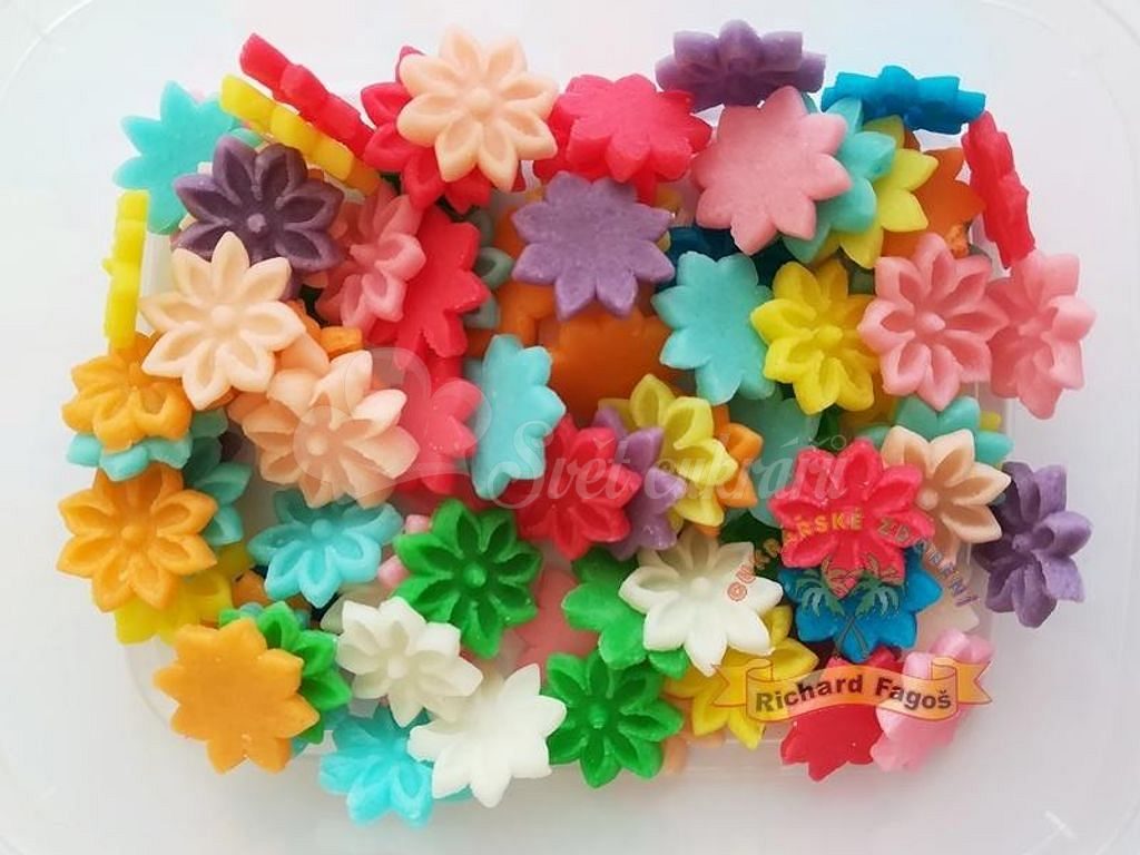 Apró, kézzel készített kókuszos virágdíszek édes mandula aromával, torták és sütemények dekorálásához. Egy doboz kb. 120 db, 1,5 cm-es virágot tartalmaz.