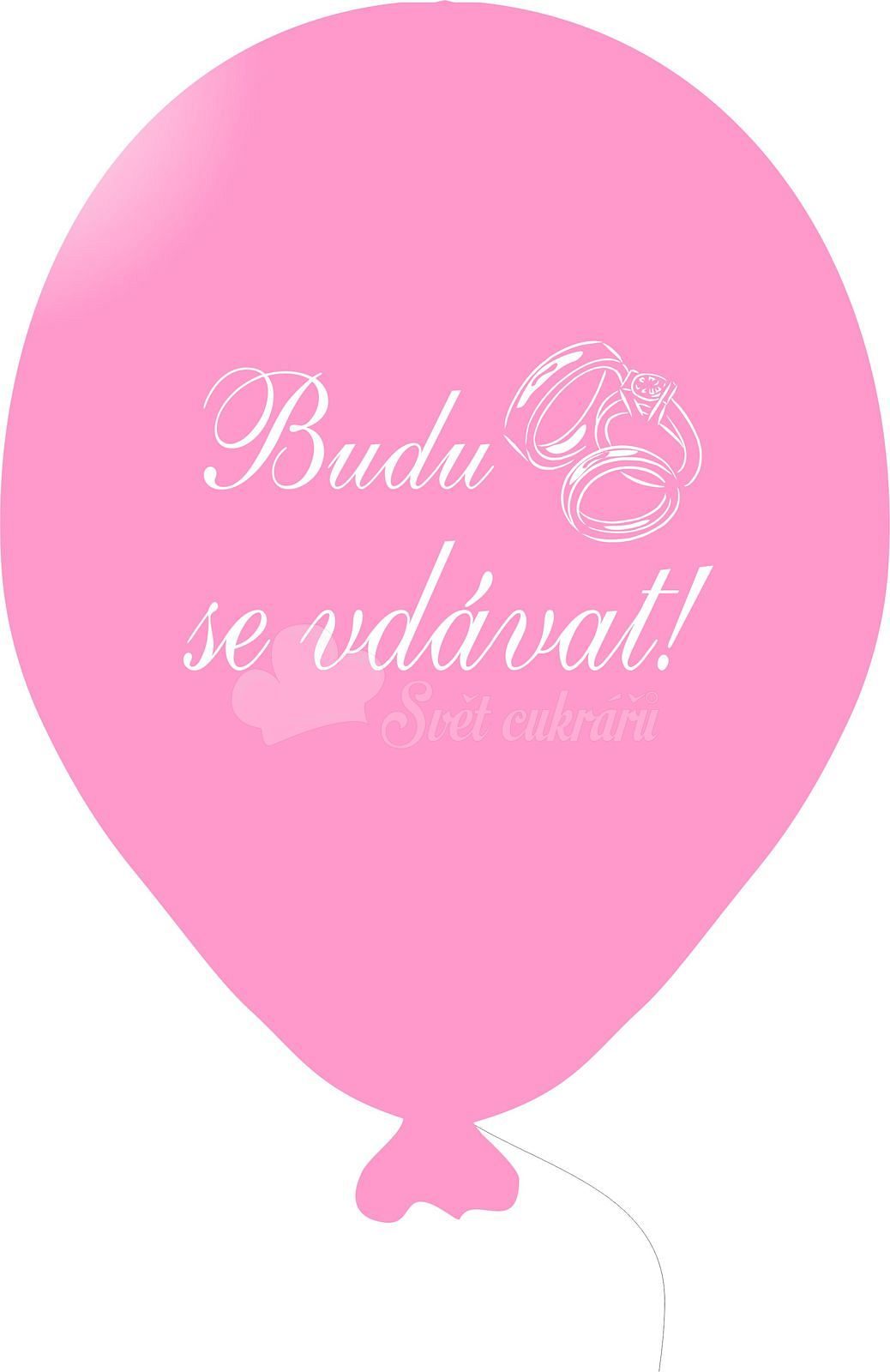 Rózsaszín lufi - átmérő 27 cm, térfogat 10 liter, "Budu se vdávat" felirattal. Dekoráció a leendő menyasszony számára a leánybúcsúra. A lufi felfújható levegővel vagy héliummal.