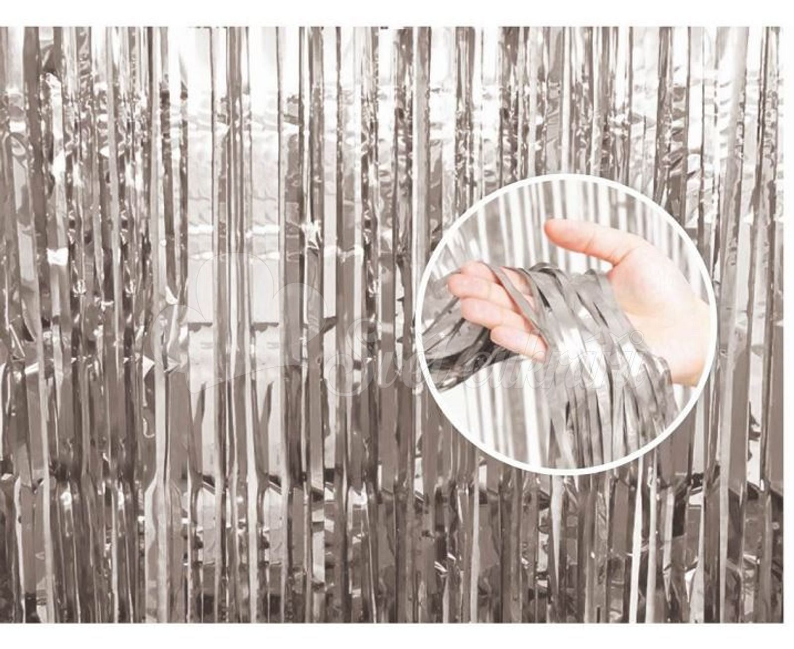 Az ezüst alufóliából készült ajtófüggöny alkalmas farsangi, szilveszteri vagy halloweeni partik otthoni díszítésére vagy egy bárban. Az ezüstmetál színű függöny szintén remekül díszíti bármelyik ünnepély fotósarokját. Méretek: szélesség : 90 cm x hossz : 240 cm.