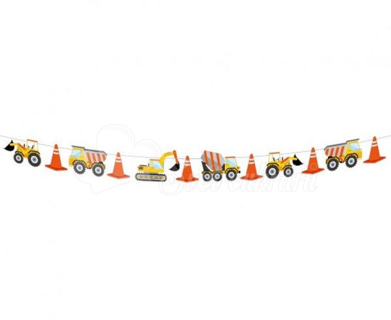 Papír girland építkezés motívumokkal a tematikus ünnepségekhez, hossza 360 cm.