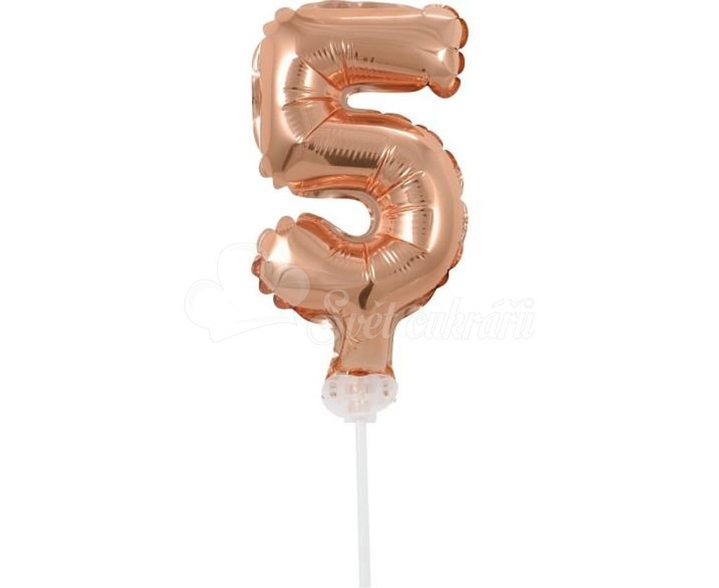 Fólia lufi szám - 5 - RÓZSASZÍN ARANY - ROSE GOLD 12,5 cm tartóval