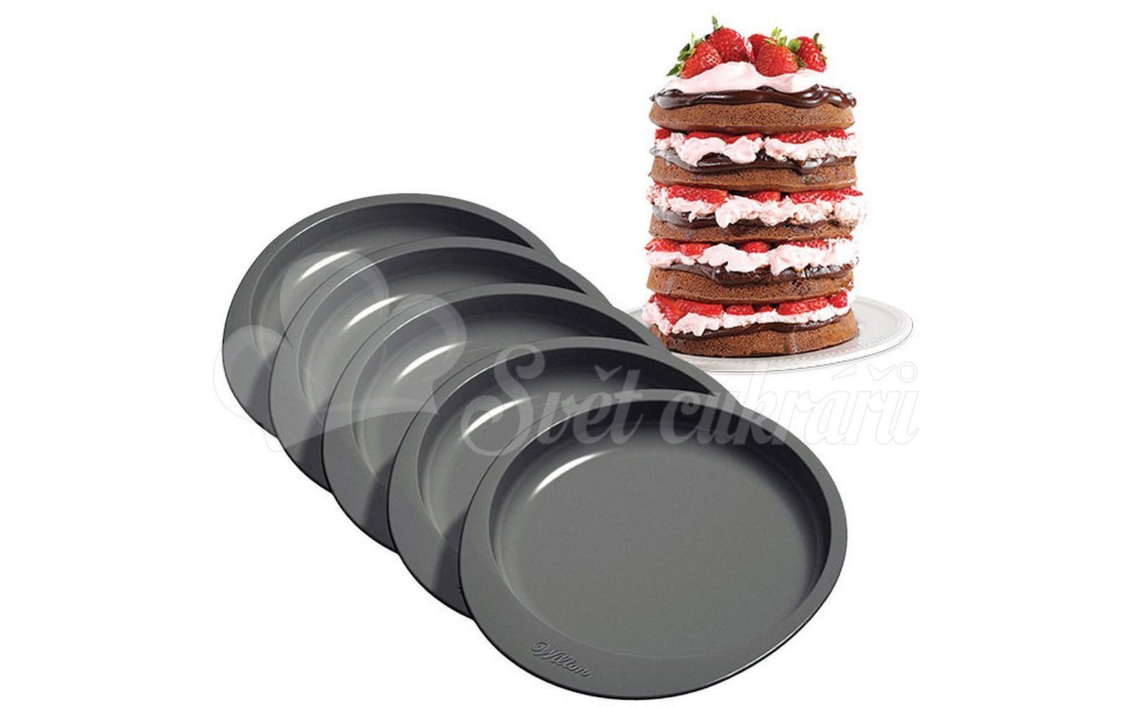 Van megoldás az Ön számára divatos többrétegű színes sütemények sütésére, gyönyörűen rendszeresen és egyszerre? Ez az amerikai Wilton gyártókészlet lehetővé teszi egyszerre öt réteg sütemény sütését könnyedén és nyugodtan, különböző színekben vagy ízekben.